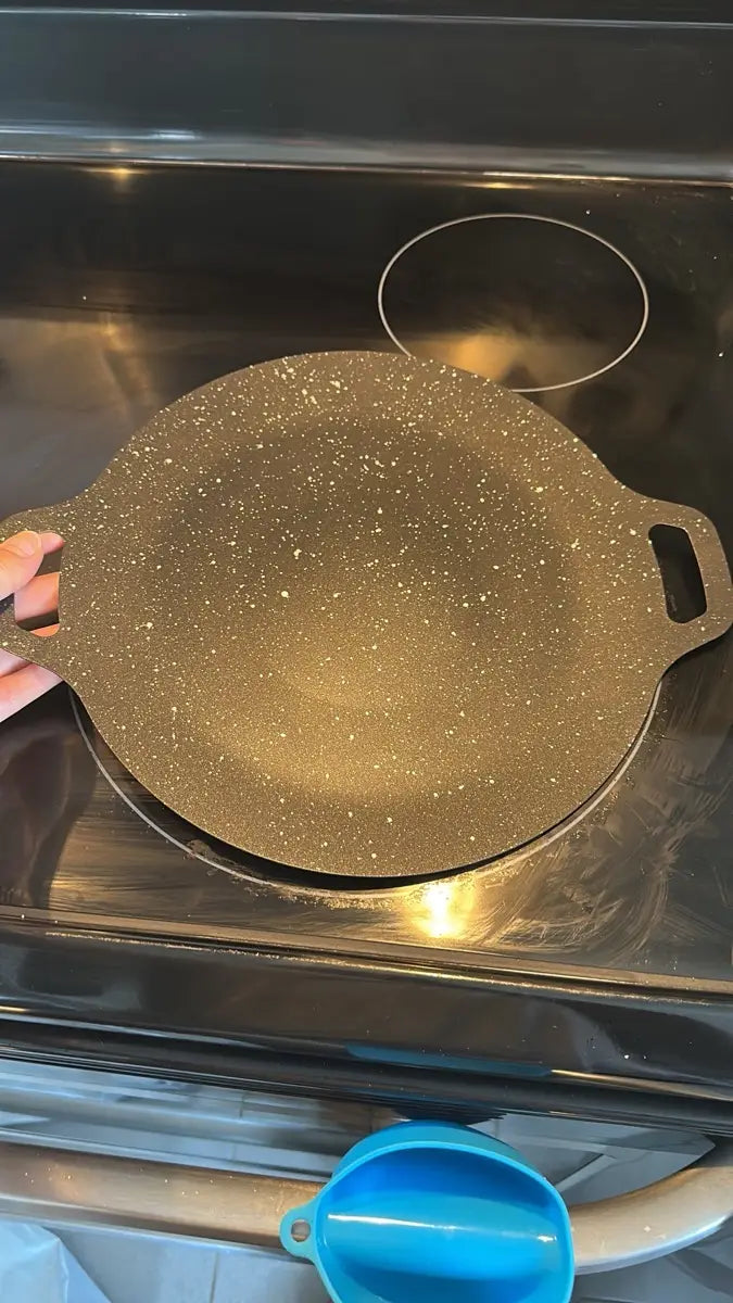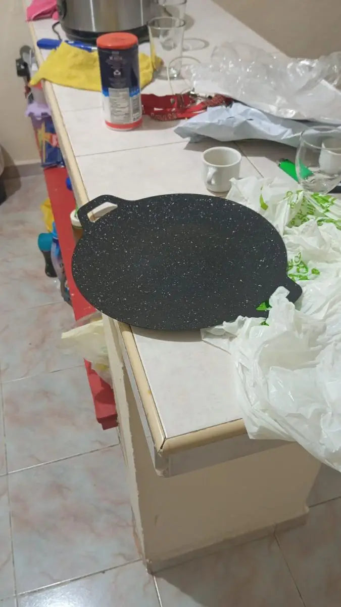Tiene 32 cm de diámetro y 1.5 cm de altura. Ideal para cocinar varias porciones a la vez sin ocupar tanto espacio.